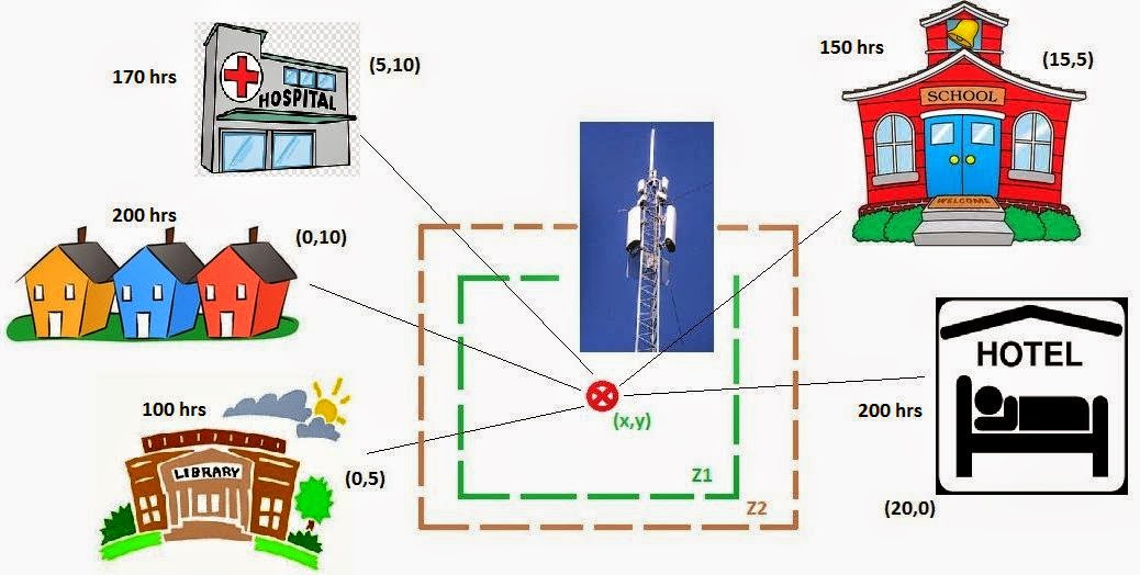 This short story, as stupid and idiotic as it may seem corresponds to an engineering problem and hopefully by the end of this post, we will solve it. Now let us take a look at the pieces of this puzzle. Let us suppose that my new X3100 is to provide high speed Internet to 5 different locations. Each location is a defined by two properties: